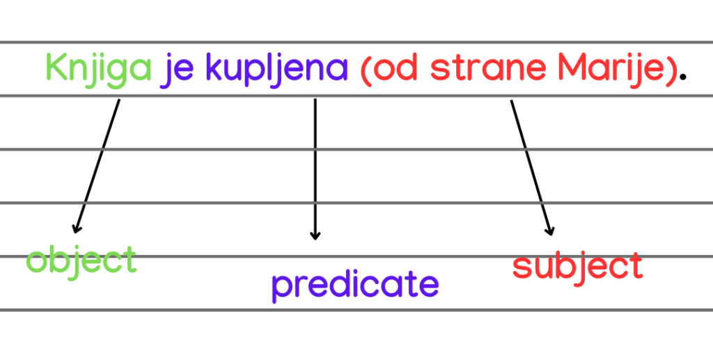 However, when you reach an intermediate or even advanced level, and if you want to put emphasis on the object, you can use the passive voice, or trpni glagolski pridev form of the predicate/verb in Serbian.